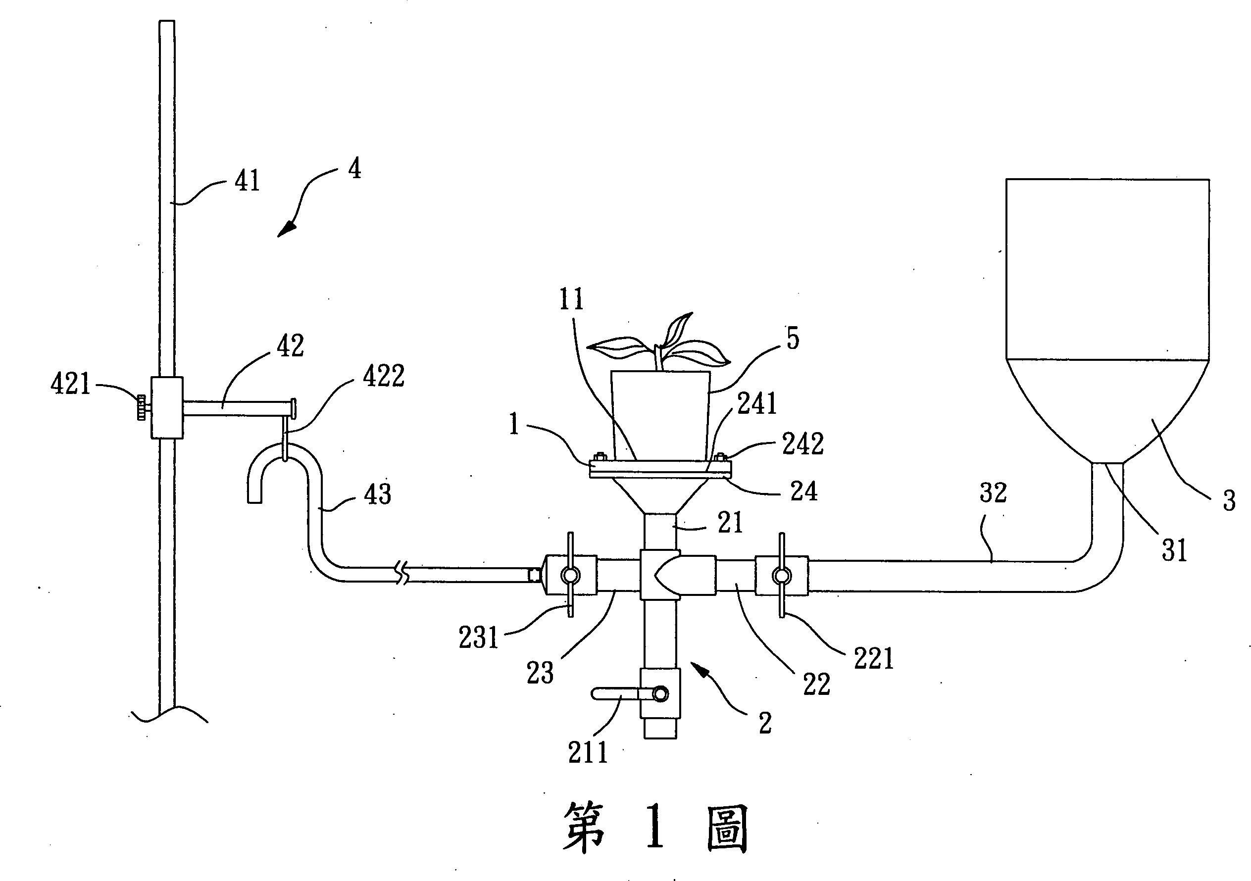 一種介質孔隙度測量裝置,包含:一固定盤具有一第一面、一第二面及數個貫通該第一面與第二面之通孔;一導液管設有一主流管、一第一管及一第二管,該主流管以連接部與該固定盤之第二面所設數個通孔相連通;該第一管第一端與主流管連通,該第一管第二端可導入液體;該第二管第一端與第一管連通;及一液位控制單元第一端係連接該第二管第一端,第二端係形成開放端。藉由該液位控制單元控制液面高低,使液體由下往上緩慢填充土壤介質。