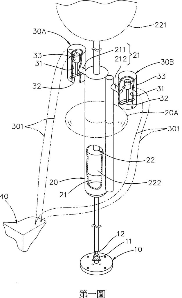 本發明係有關一種海浪壓力發電裝置,其包括一固定座、一壓力缸及兩個發電裝置,固定座固定於海洋環境底部;海洋環境具有起伏波動之海浪;壓力缸樞接於固定座上,其內具有通道部,通道部內設活塞部,並連通兩個導流端;活塞部設浮動端件及活塞端件,浮動端件浮動於海洋環境之海浪上,活塞端件延伸至通道部內,並可於兩個導流端間移動。兩個發電裝置分別連通兩個導流端;當浮動端件隨海浪起伏動作,係連動活塞端件於通道部內移動,並分別朝兩個導流端產生一吸一推的動力,以分別帶動兩個發電裝置產生電力。故,本案兼具可將自然海浪動力轉成電力、海浪起伏可轉成動力與可降低海浪衝擊的壓力等優點。