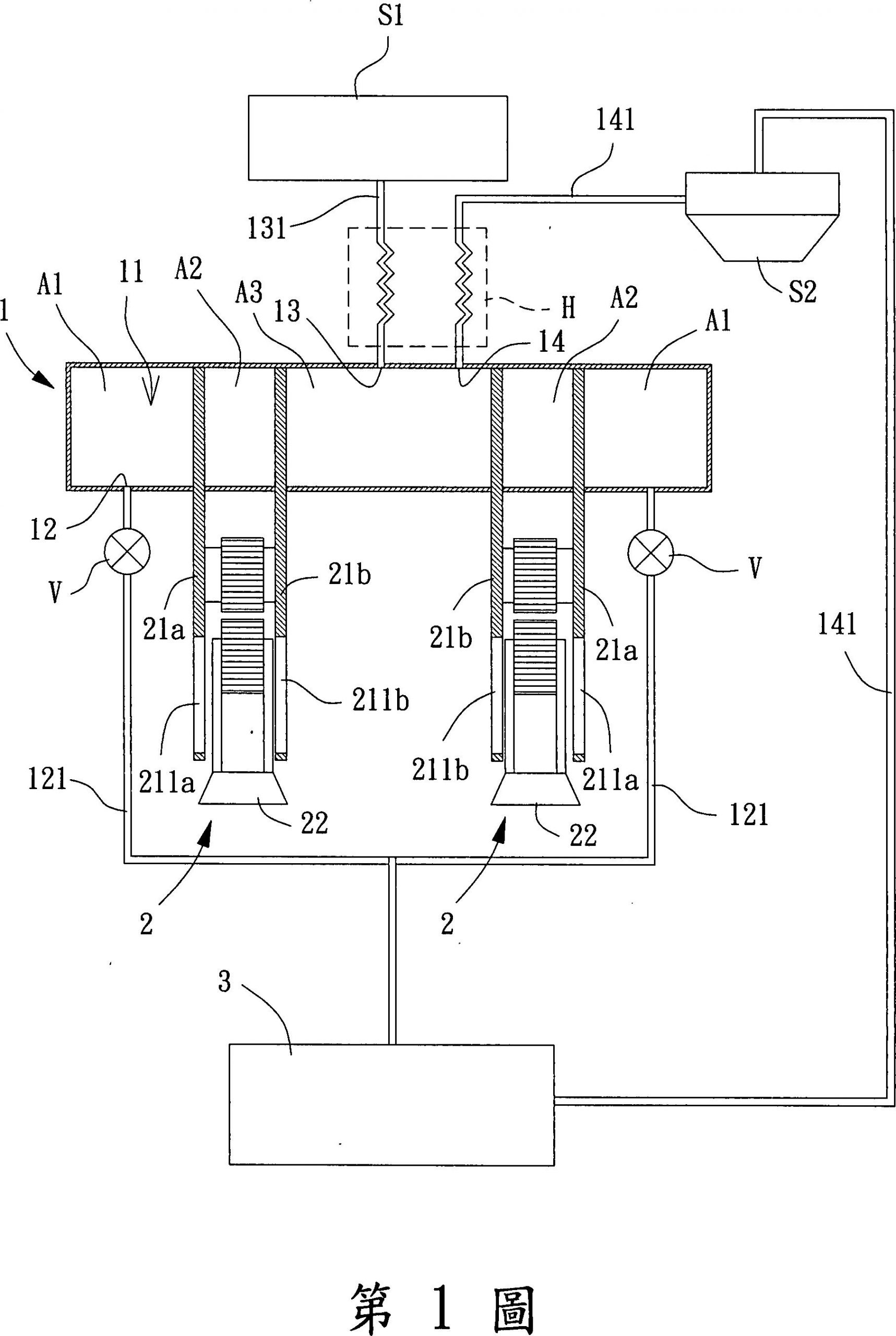 一種碳黑製造裝置,包含:一槽體,具有連通一容置空間的數充填口及一排出口,且該排出口另連通一分離槽;至少一調控組件,具有一第一分隔體、一第二分隔體及一驅動件,以由該第一分隔體及第二分隔體將該容置空間區分為至少一高壓氣體充填區、至少一高能震波生成區及一高能震波衝擊區,該高壓氣體充填區對應充填口,該高能震波衝擊區對應另一充填口及排出口,並用以充填原料油,該驅動件帶動該第一分隔體及第二分隔體,以控制該高壓氣體充填區、高能震波生成區及高能震波衝擊區之連通;及一高壓氣體生成器,與該高壓氣體充填區相互連通,用以注入高壓氣體。